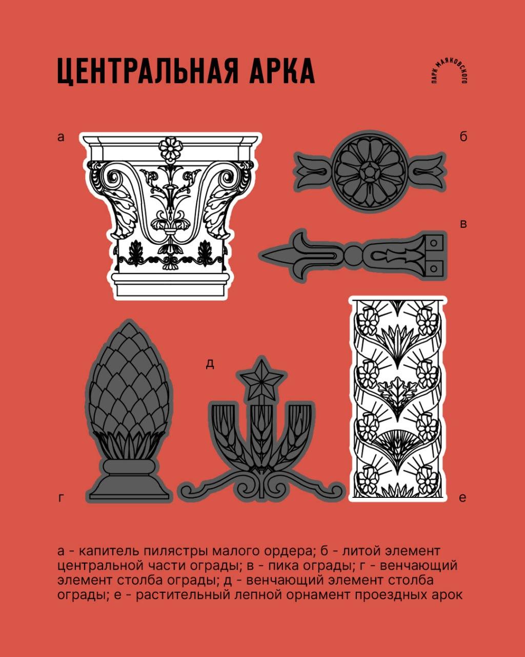 В ЦПКиО оцифровали и сохранили в проекте важные декоративные элементы: капители, пики, кессоны и другую лепнину.