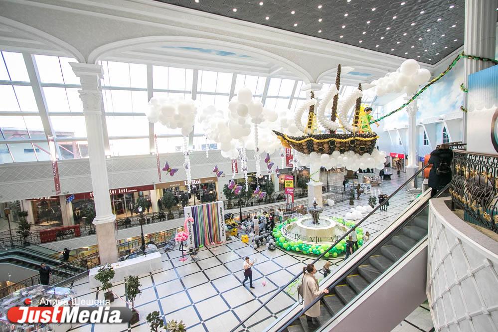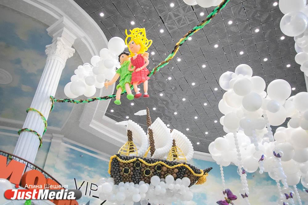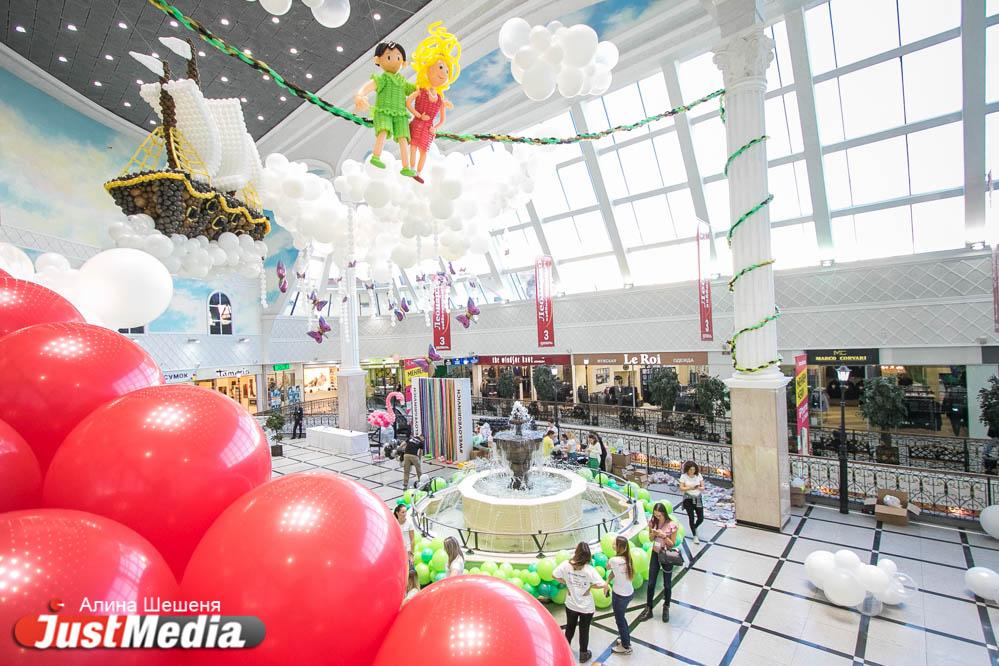 В «Гринвиче» появилась масштабная инсталляция из ста тысяч воздушных шаров, основной идеей которой стали сказки о Питере Пэне Полсотни профессиональных декораторов со всей России создавали арт-объекты прямо на глазах посетителей торгового центра.