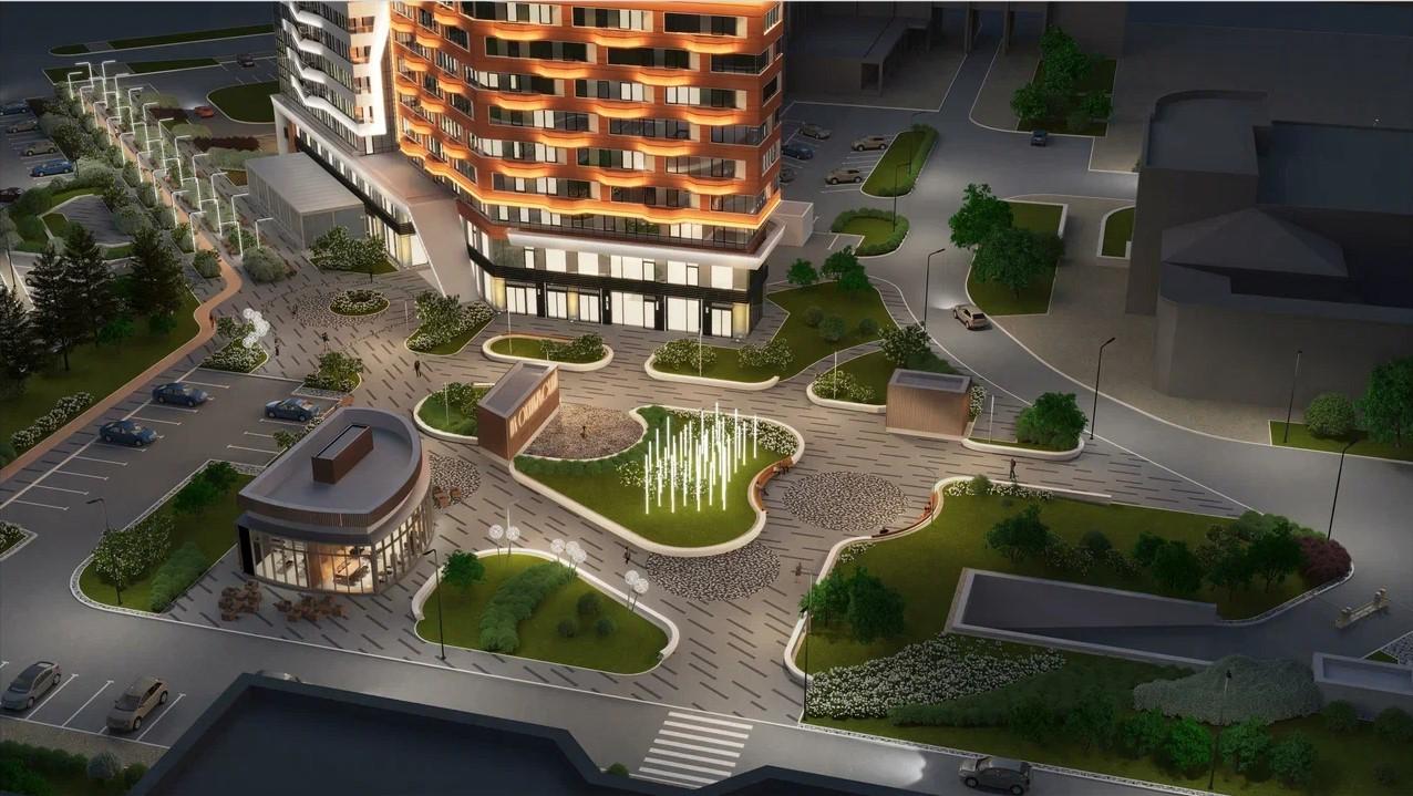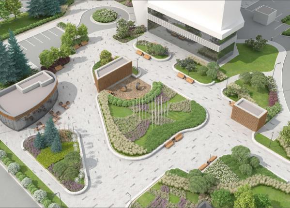 Организация сквера станет вторым этапом благоустройства территории перед «Навигатором». На первом этапе застройщик произвел переустройство инженерных сетей и вынос старых, бесхозных коммуникаций, построил подземный паркинг на 200 машиномест, заменил дорожное покрытие.