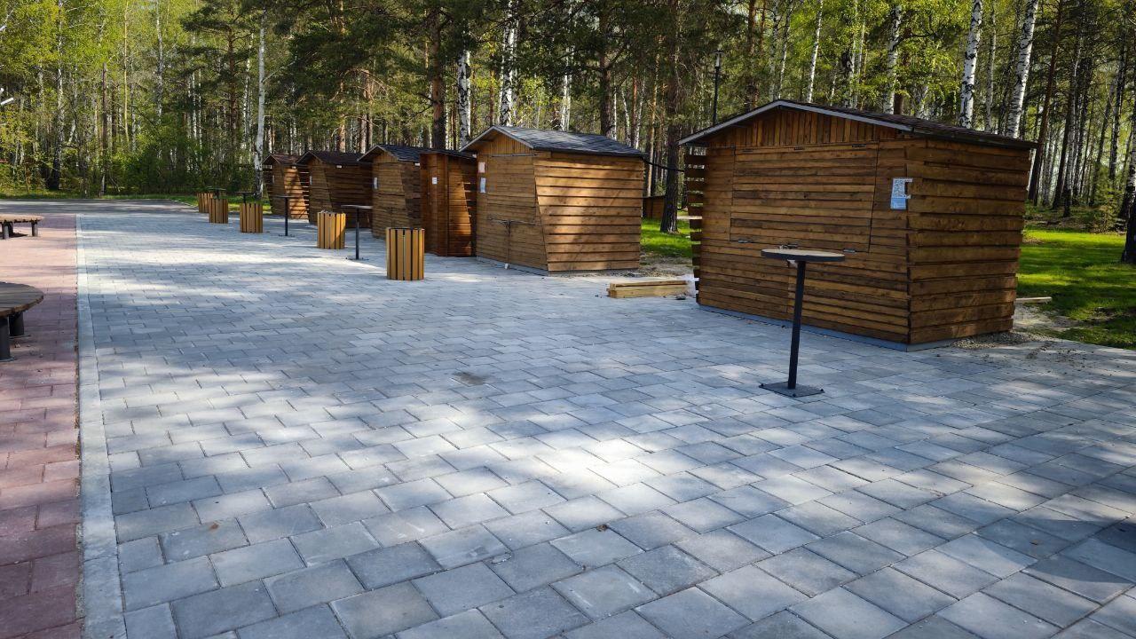 В парке появились новые качели, устанавливают навесы и скамейки.