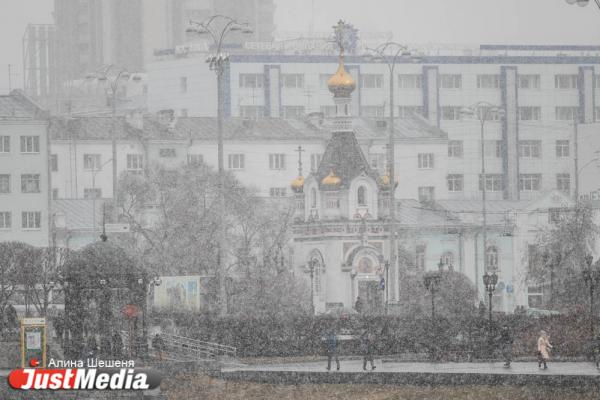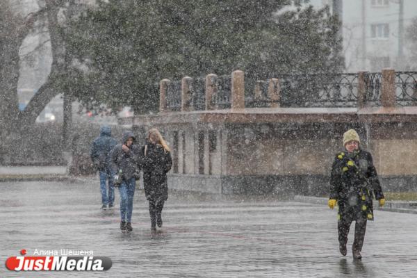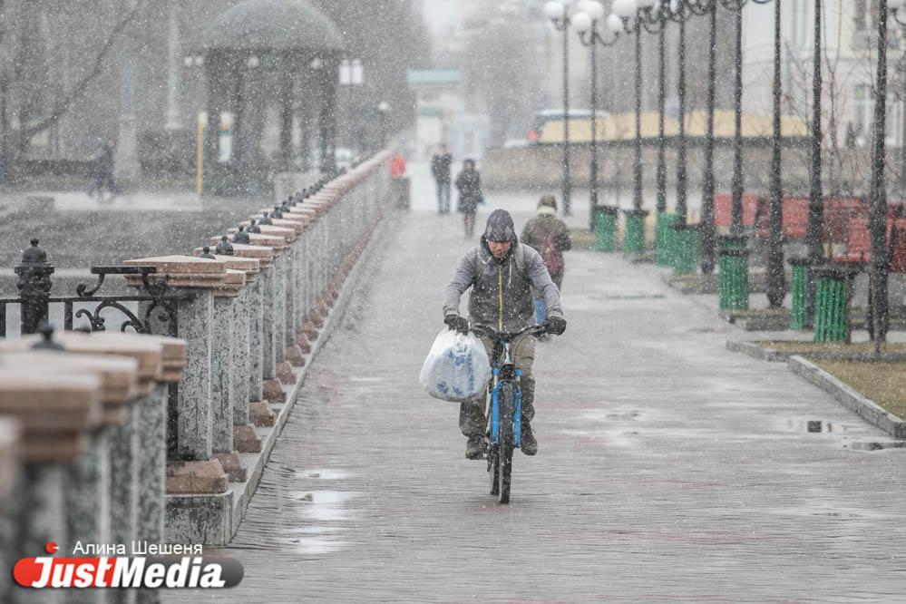 Екатеринбург в середине апреля накрыло снежной пургой. Пешеходам пришлось вновь доставать зимние вещи, а автолюбителям – отменять запись в шиномонтаж. Наш фотокорреспондент прогулялась по уральской столице и лично убедилась, почему в такую погоду хороший хозяин собаку на улицу не выгонит.