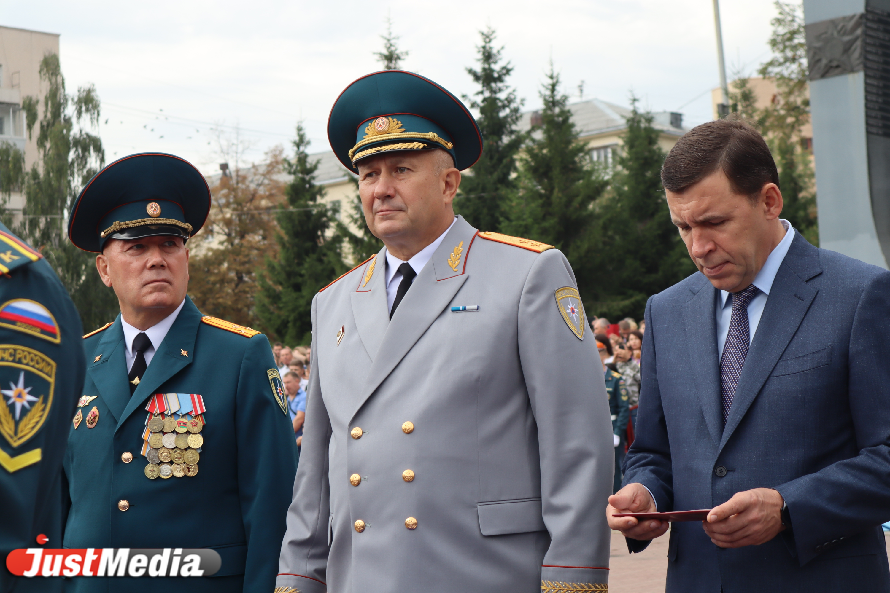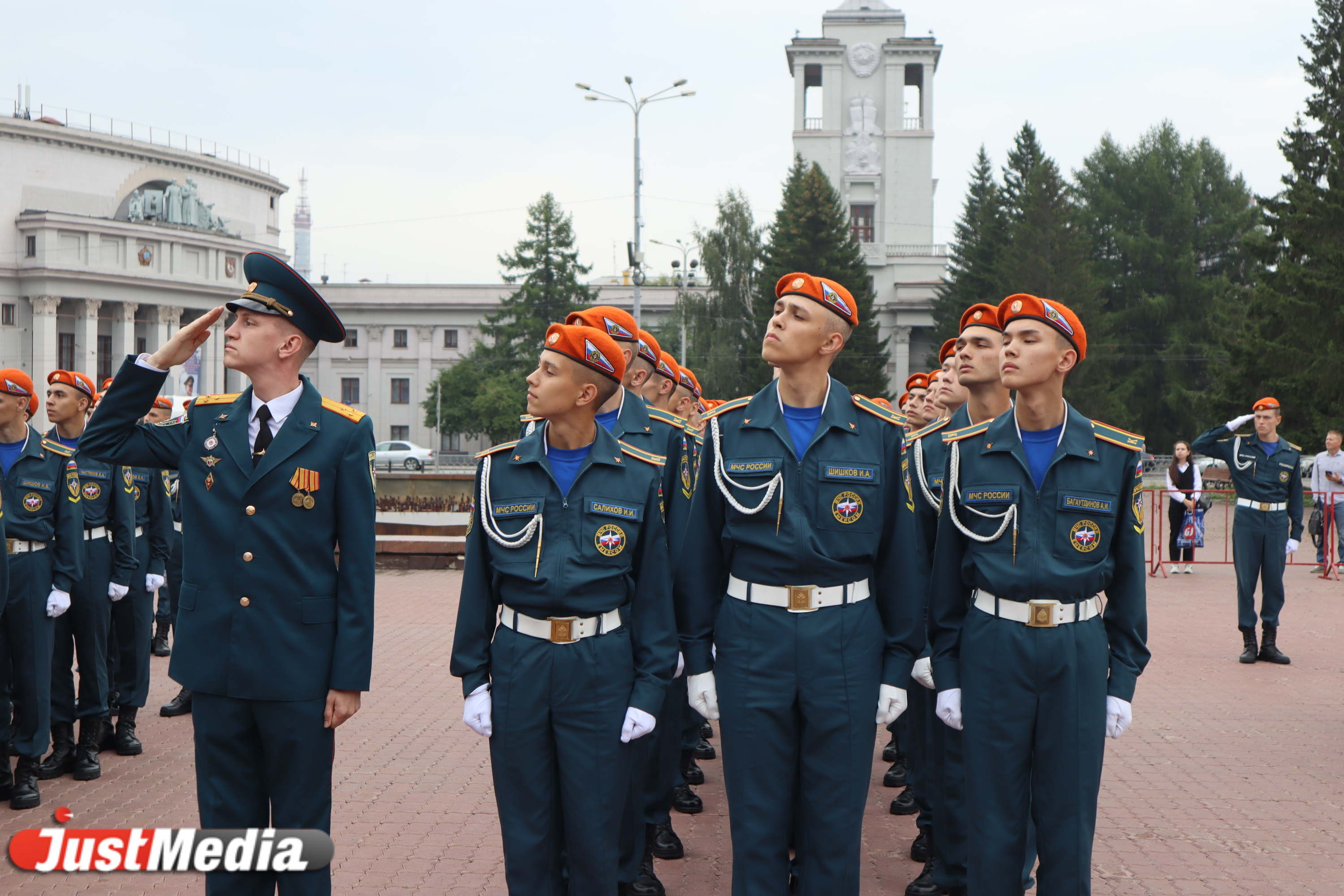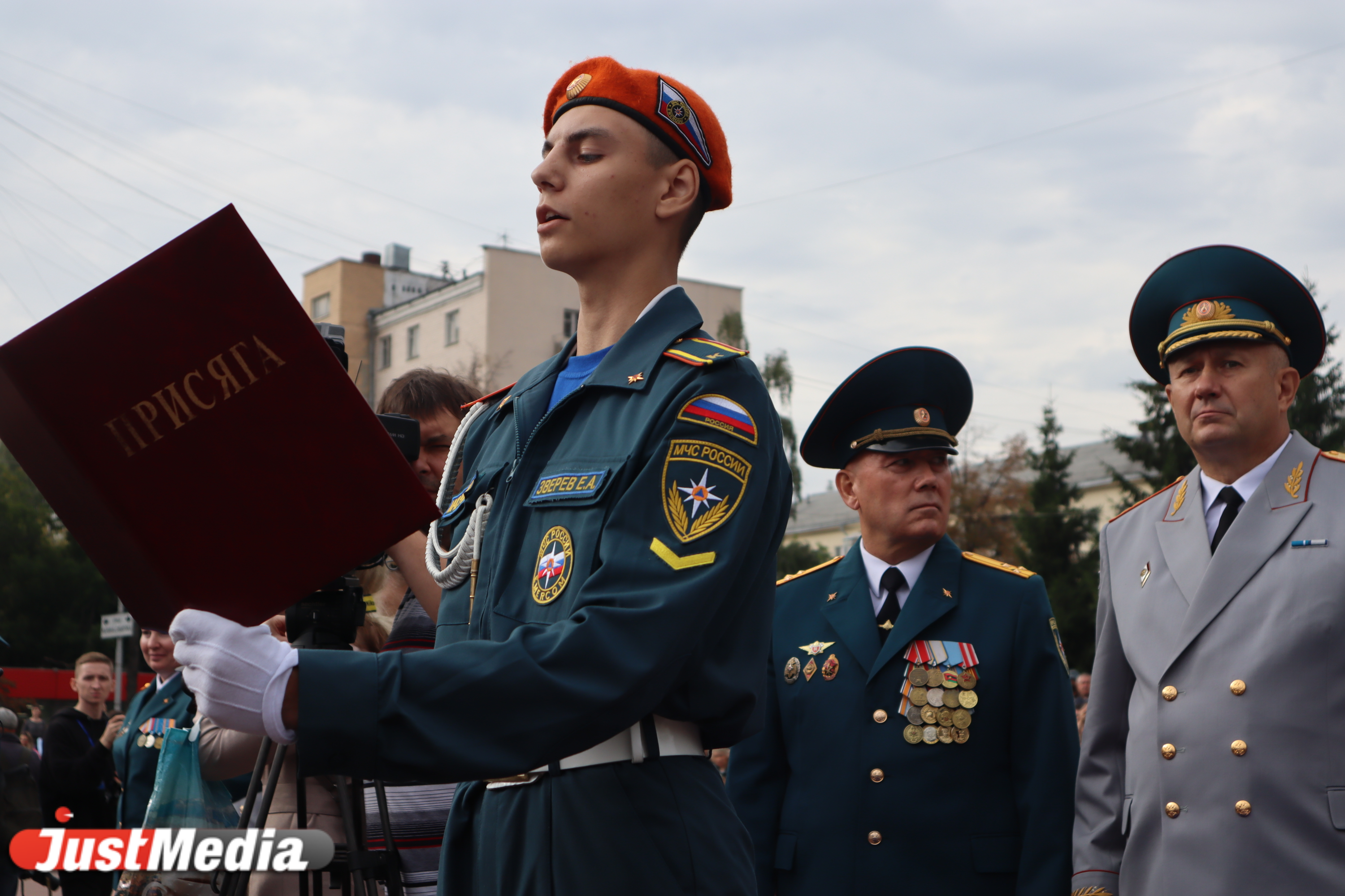 Первым делом он принял присягу у курсантов Уральского института ГПС МЧС РФ.