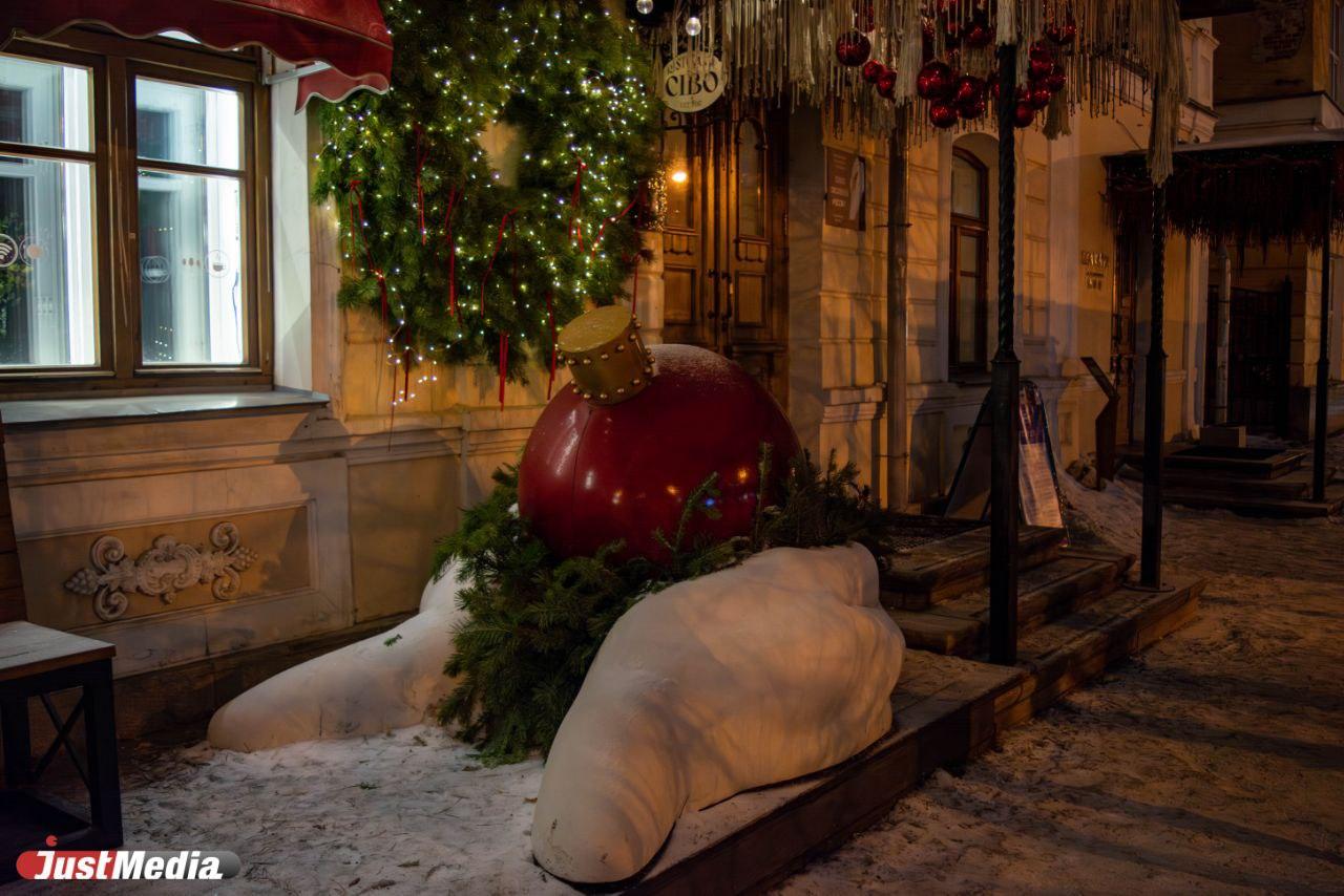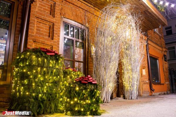 Свои огоньки и подсветки включили и другие объекты в центре столицы Урала. Так, на площади Труда появился светящийся новогодний шар, у Главпочтама — ворота, у Водонапорной башни в Историческом сквере — корабль. Многие заведения общепита также тадиционно украсили входные группы.