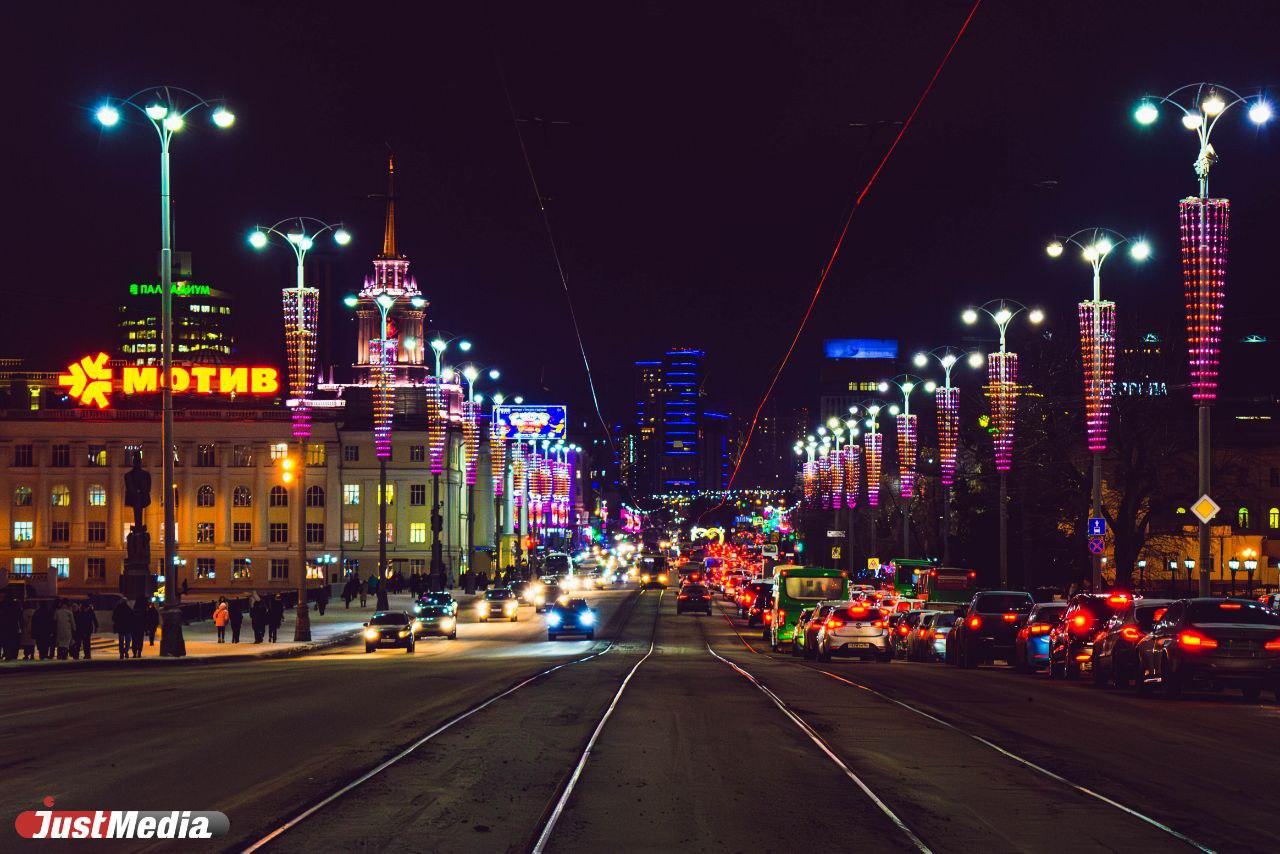 В Екатеринбурге на главной елке города на площади 1905 года зажгли гирдянды. В этом году 30-метровая елка искусственная, но очень похожа на живую. Ее украсили 55 неоновых игрушек в виде тростей и цилиндров, что были в гардеробе у Пушкина. На верхушке — светящийся шатер.
