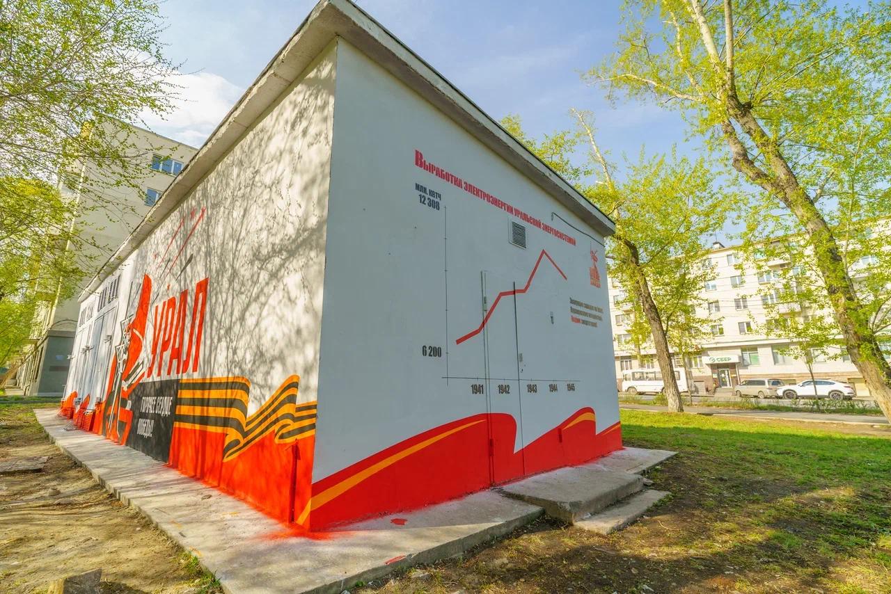 Сразу три энергообъекта «Россети Урал» в Екатеринбурге, Перми и Челябинске получили тематическое оформление в честь 80-й годовщины Победы в Великой Отечественной войне 1941-1945 гг. Муралы представляют собой собирательный образ энергетиков Урала и Прикамья, которые внесли существенный вклад в Победу. На стены трансформаторных подстанций также нанесен график выработки электроэнергии Уральской энергосистемой в годы войны и график ее суточной работы 9 мая 1945 года. В момент объявления долгожданного события заводы остановили свое производство, произошел резкий спад нагрузки от плановых значений, а все граждане нашей страны искренне радовались Победе в войне.