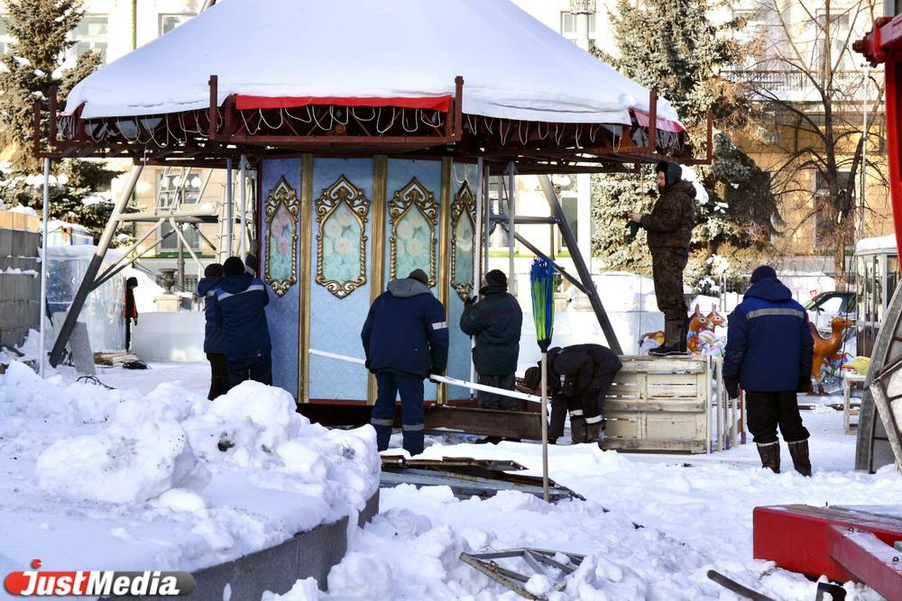 В Екатеринбурге начали убирать ледовый городок на площади 1905 года и светящиеся фигуры в центре города.