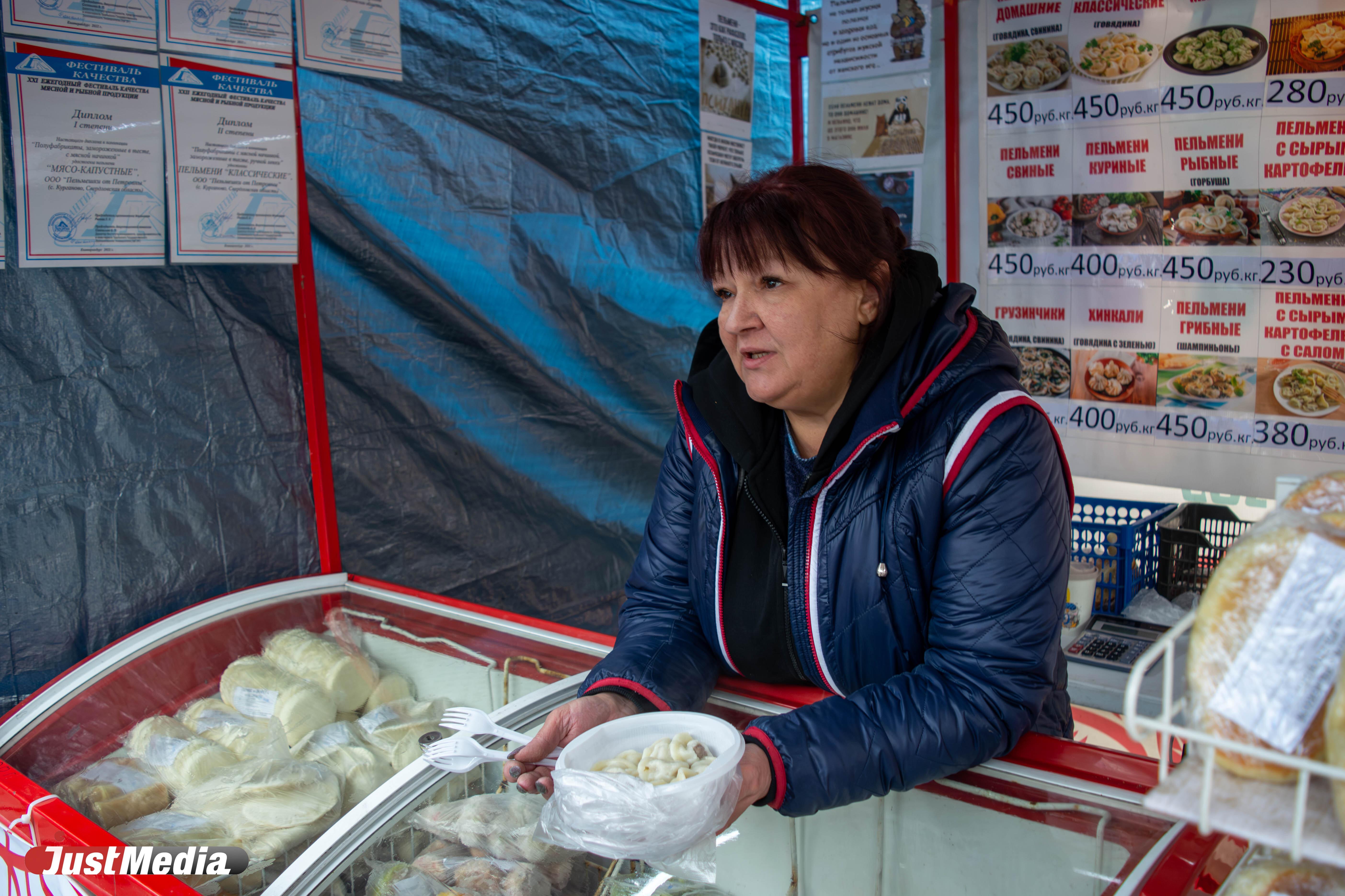 Тут же на ярмарке представили свои изделия изготовители пельменей. Варят их прямо за прилавком и угощают всех желающих. Валентина Иванова из села Курганово создала свой бренд: «Пельмешки от Петровны». За одну ярмарку женщина продает около 200 килограмм изделий. Вкусы разные: от классических мясных до рыбных. Всего 46 позиций.