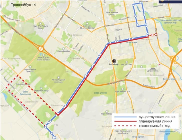 Изменится схема движения маршрута №14 «Академгородок-Декабристов». Троллейбусы этой линии направят по улицам: Академика Сахарова- Вильгельма де Генина – Краснолесья. Маршрут укоротят до остановки ЦПКиО. Число машин увеличится восьми до десяти. Интервал движения машин час-пик составит 9 минут.