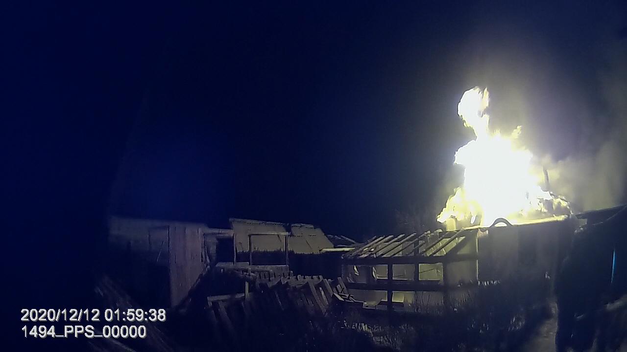 Сотрудники полиции отнесли мужчину подальше от горящего строения, так как была вероятность взрыва газового баллона. Не забыли они и о собаке, сидевшей на привязи в вольере. Домашнего питомца отвязали и вывели из опасной территории.
