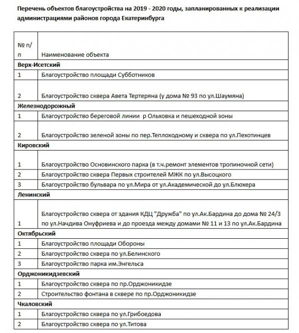 Напомним, что по инициативе мэра города Александра Высокинского, в 2019 году все семь районов Екатеринбурга получат из городского бюджета дополнительные целевые средства на благоустройство парков, скверов и других общественных пространств. Всего на реализацию данного плана будет направлено более 160 миллионов рублей.