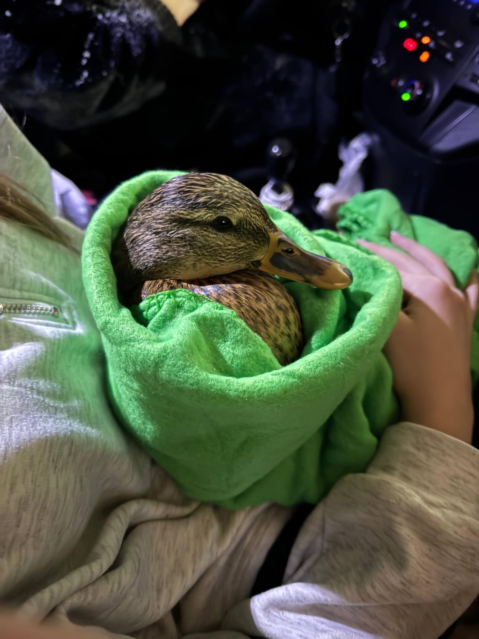 Злополучный крючок и леску зоозащитники сняли на видео. В ролике также можно увидеть, что спасенная утка покорно сидит на руках.