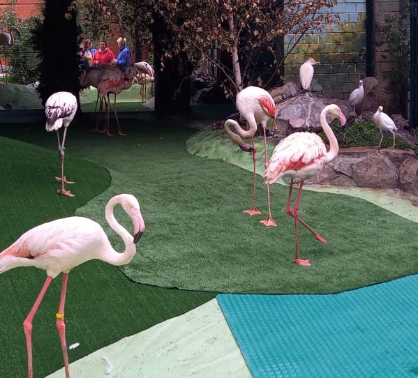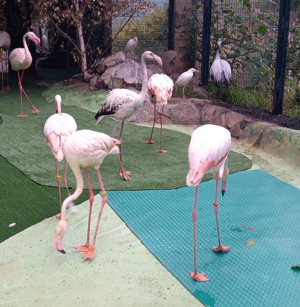 В Екатеринбургском зоопарке поселились семь фламинго. Среди них знаменитый югорский «фламинго в штанах». Шесть из них прибыли из парка птиц «Малинки» Ростовской области. Фламенко, Франт, Фредди, Фил, Фрея, Фейри, Фиона сейчас осваиваются в вольере.