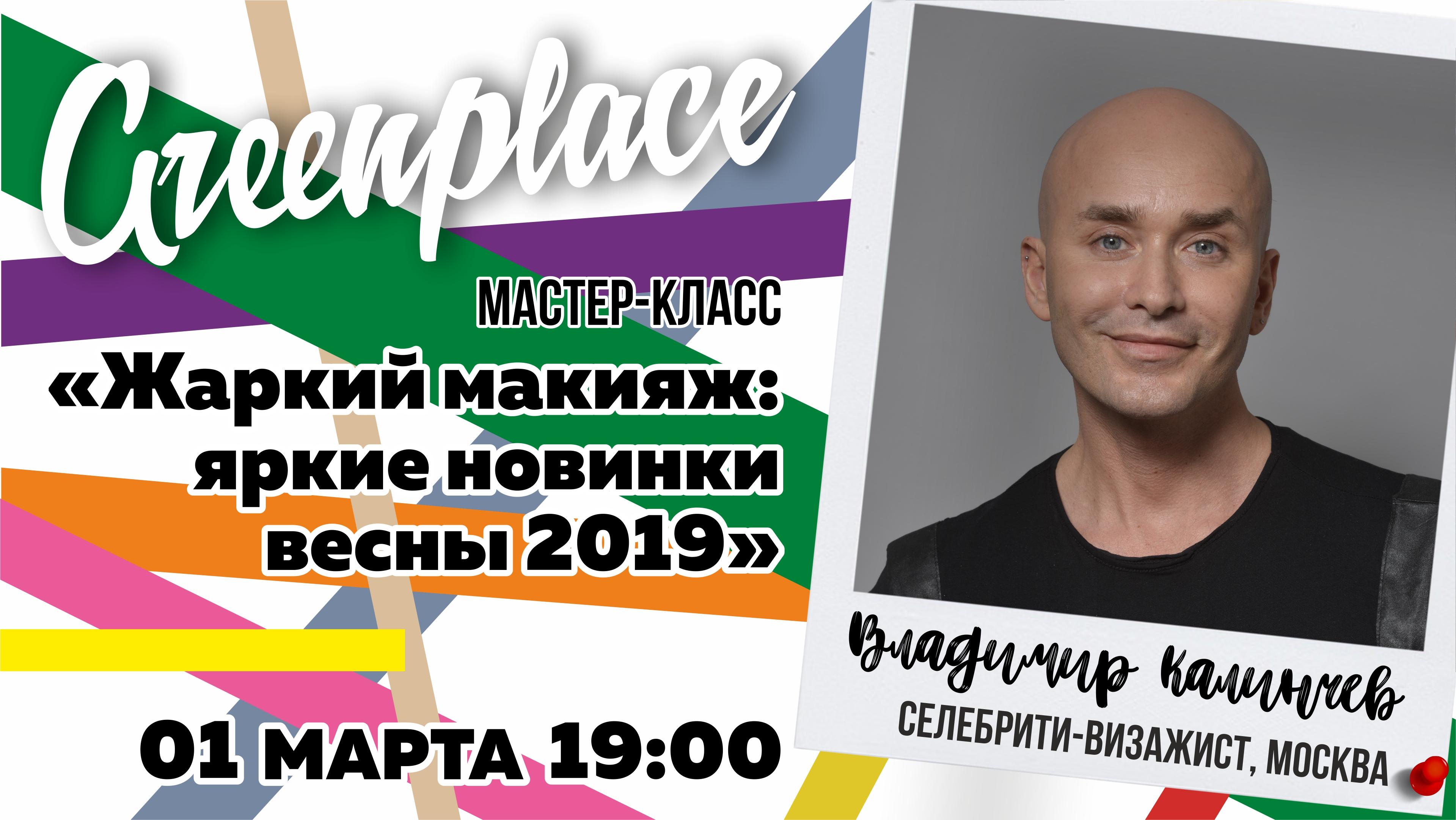 Мастер-класс «Жаркий макияж - яркие тренды весны 2019» от визажиста Владимира Калинчева пройдет 1 марта в 19.00 в «Гринвиче» на пространстве GreenPlace (5-я очередь, 1 этаж).