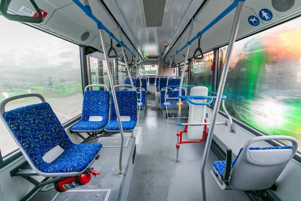 В новых машинах есть: автоматическая система обнаружения и тушения пожара, система видеонаблюдения, тахограф, Wi-Fi, система контроля за состоянием водителя, оборудование для перевозки маломобильных групп населения.