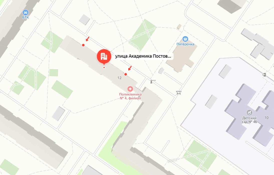 Следующий прием жительнице Екатеринбурга назначили уже на Академика Постовского, 12. Какого же было удивление девушки, когда на картах она увидела, что данное здание является филиалом поликлиники №4, к которой она и была изначально прикреплена.