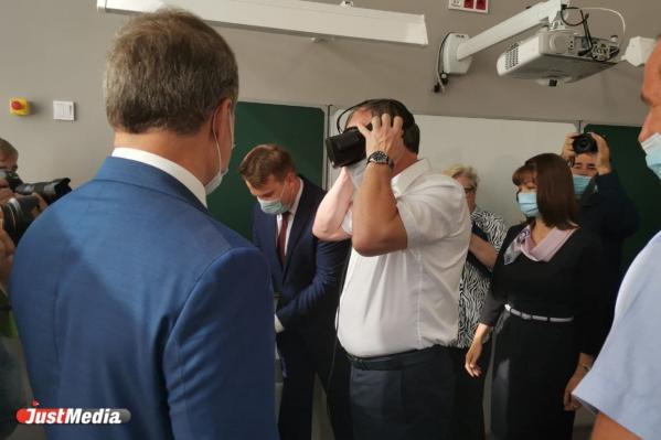 Мэр города Алексей Орлов оценил новые технологии школы и даже попробовал их на себе.