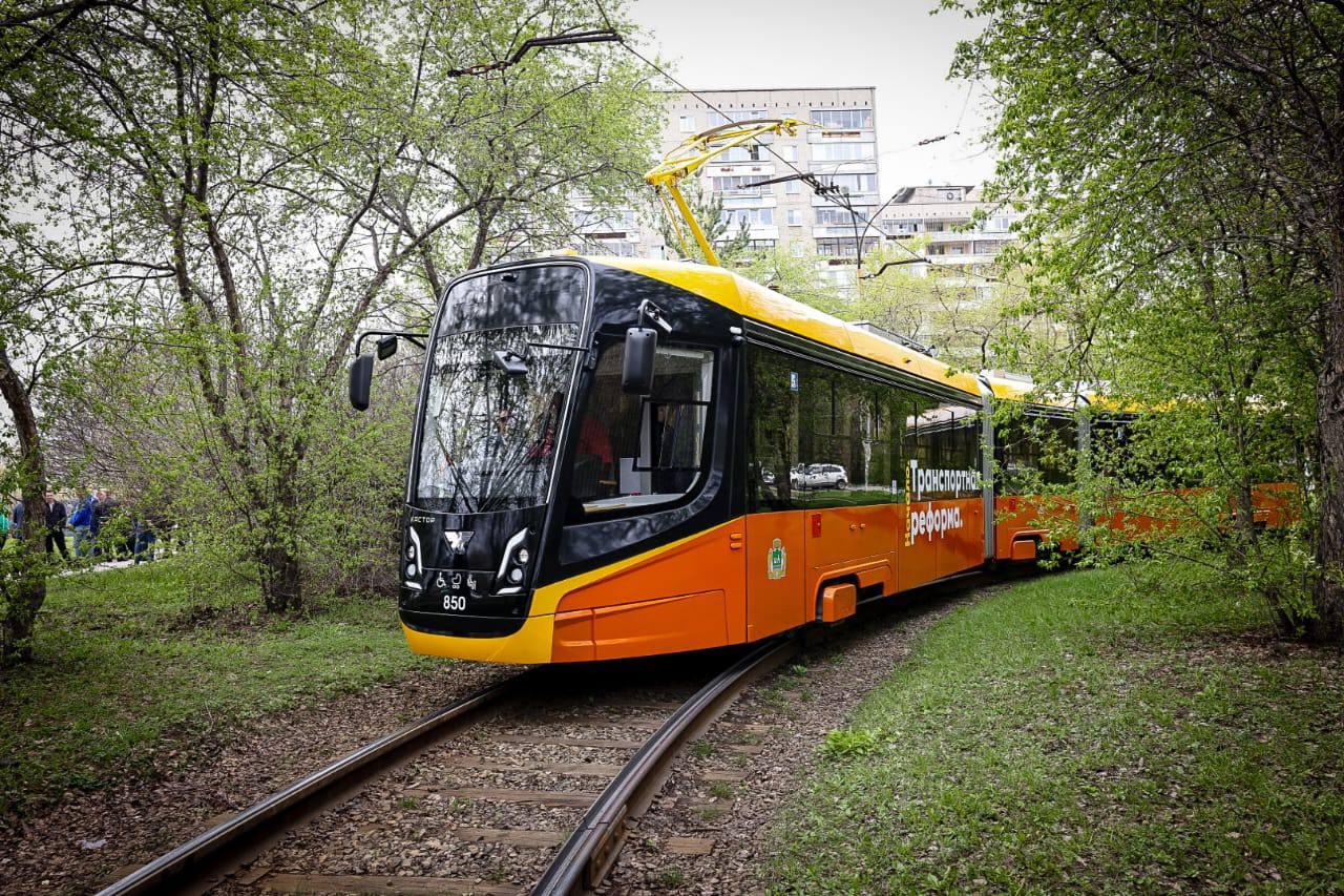 Новый трамвай проходит обкатку в Екатеринбурге.