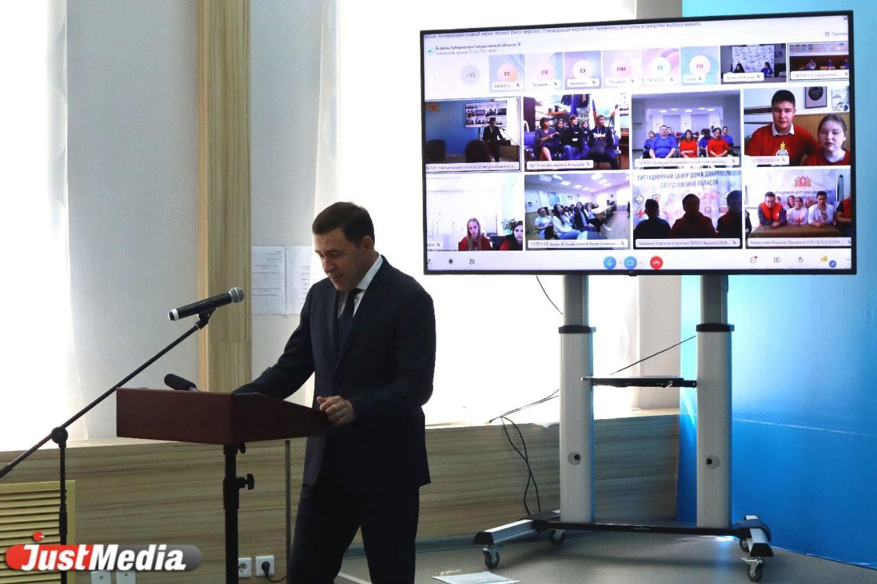 Встреча началась с приветственного слова губернатора, который отметил высокий вклад волонтеров в борьбу с пандемией COVID-19 и в помощь жителям ДНР, ЛНР и эвакуированных на Урал жителей юго-востока Украины.