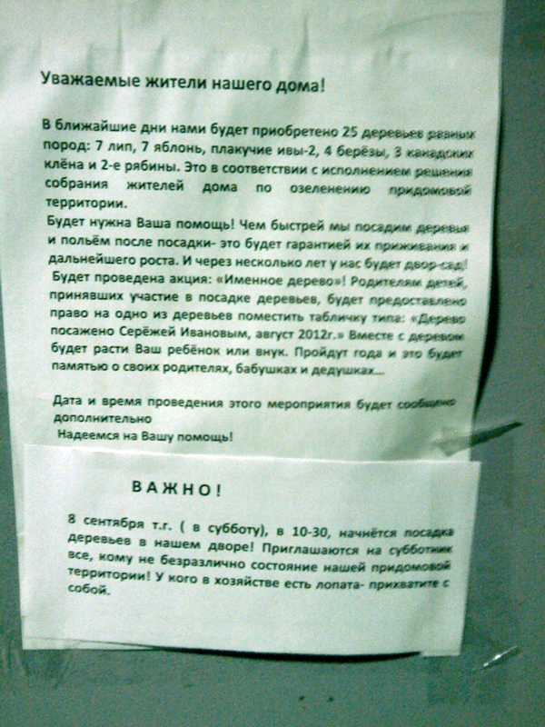 Об акции жителей домов оповещали с помощью вот такого объявления: