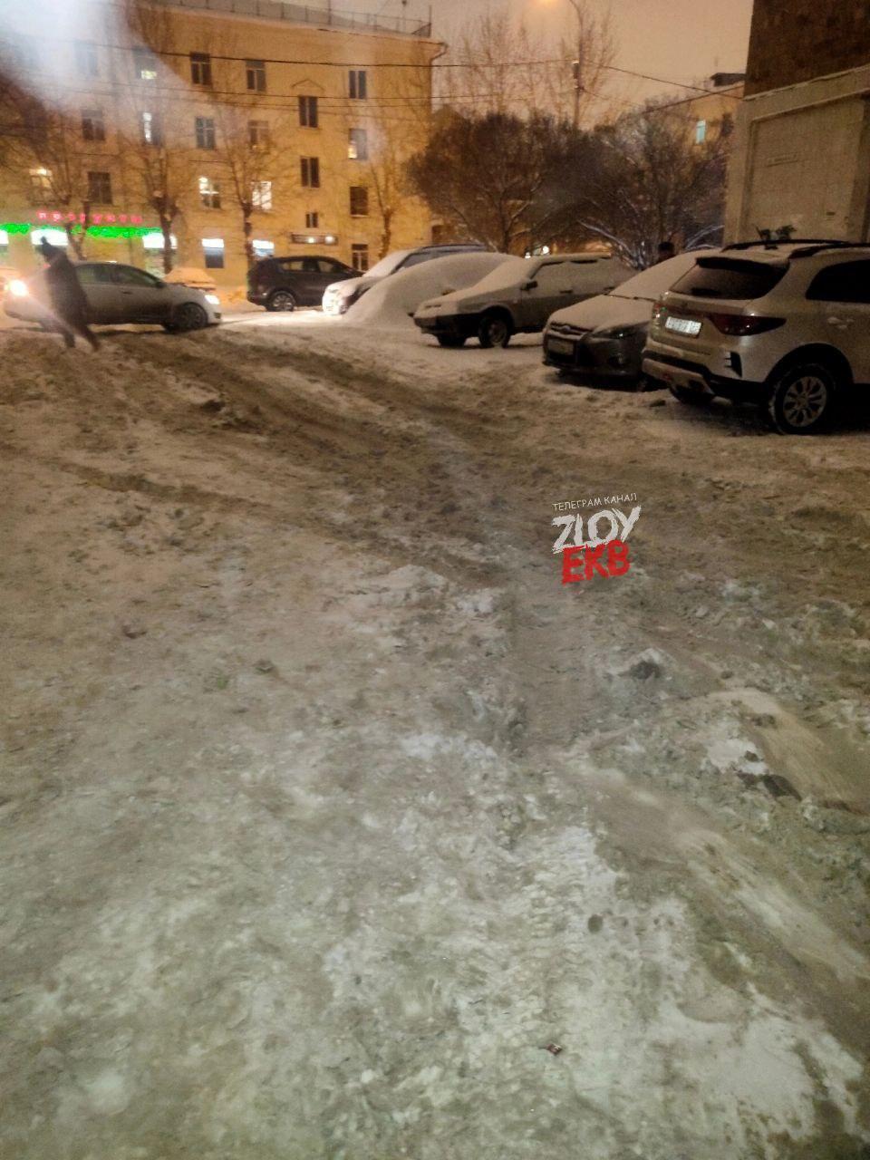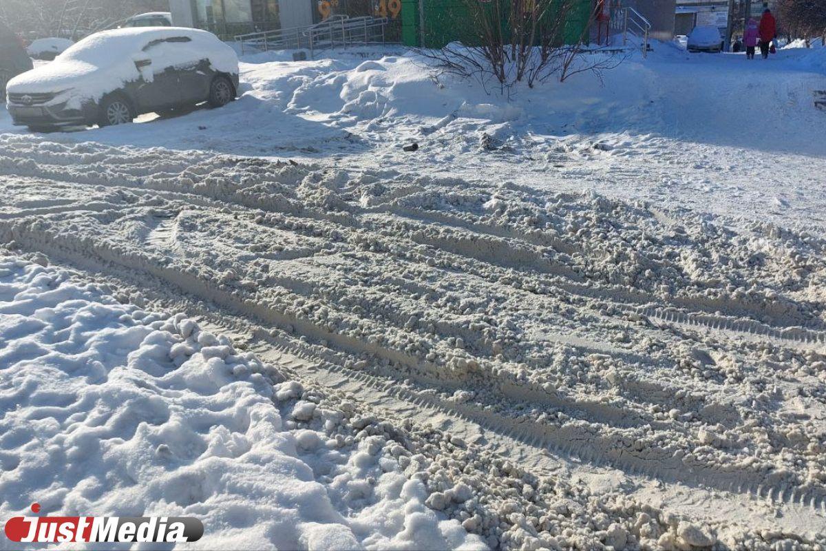 Фотографии неубранных дорог в «Городке чекистов» публикует «КП-Екатеринбург».