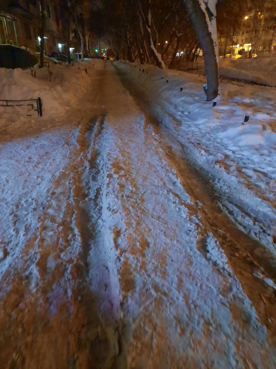 А вот еще фотографии из того же телеграм-канала, правда без указания адреса. Автор сообщения говорит, что во дворах две недели висело объявление об уборке снега, но провели ее далеко не везде.