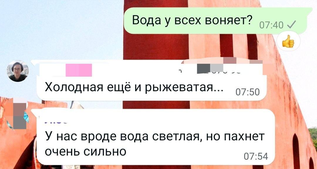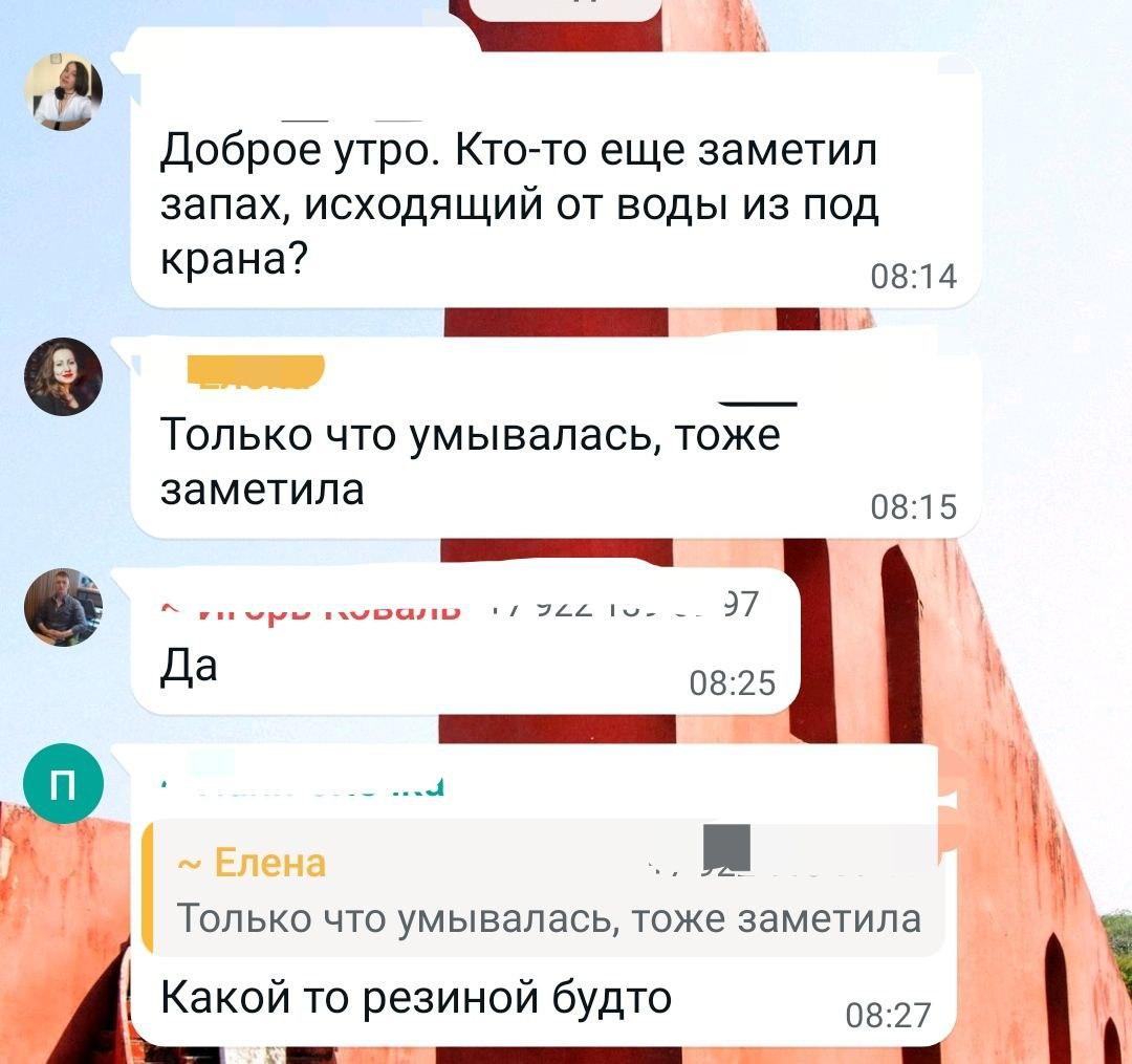 Жители Ботаники сообщают, что помимо запаха в холодной воде присутствуют какие-то примеси, которые хорошо видно в прозрачной или белой посуде. Запах тоже характеризуют по-разному - от хлорки до резины и ацетона.