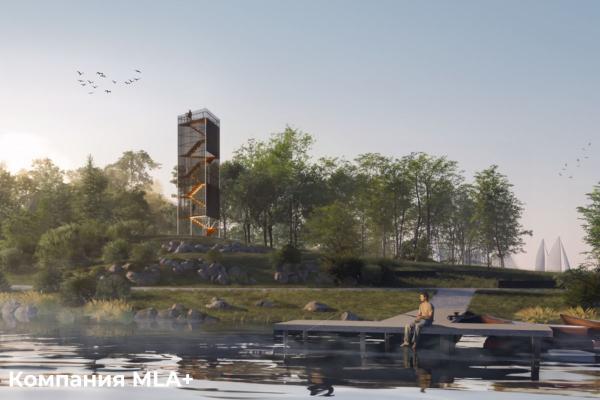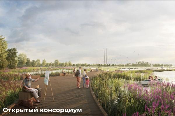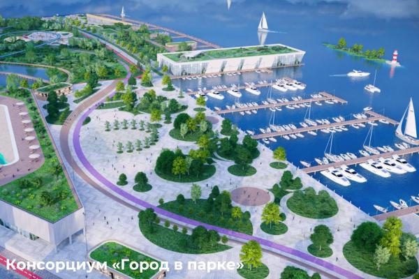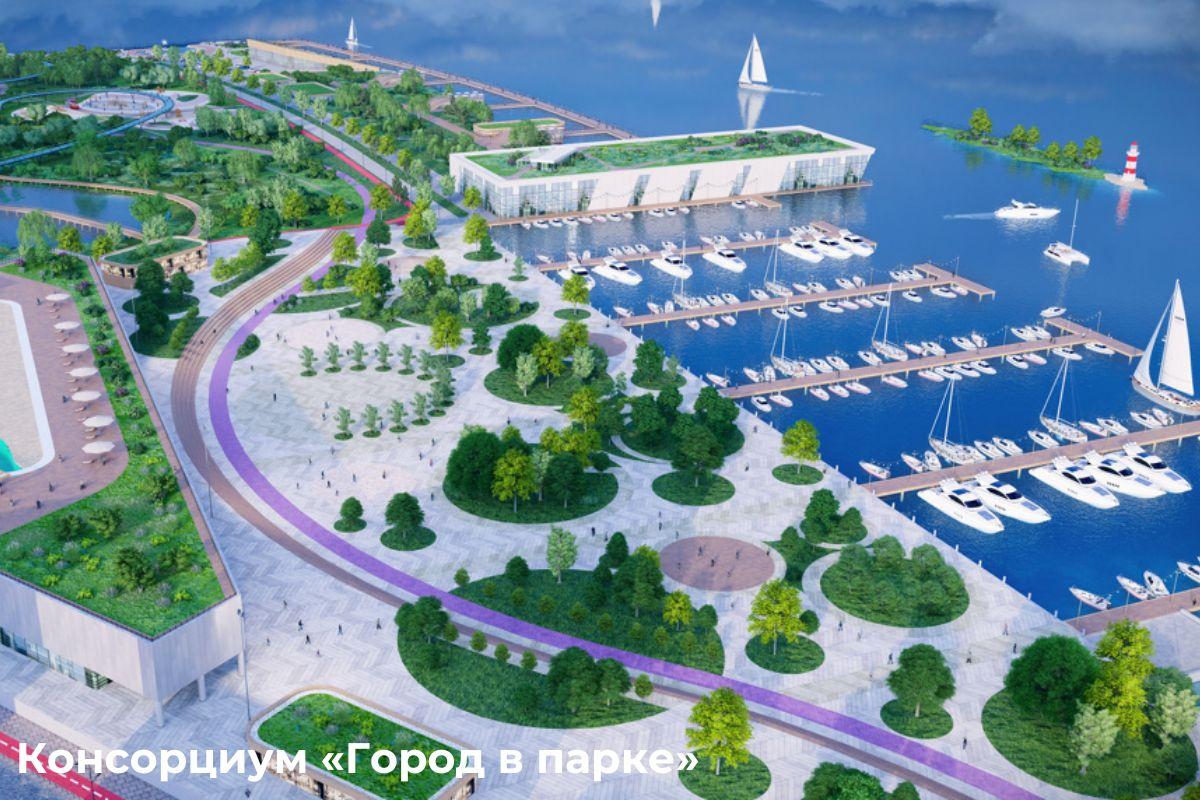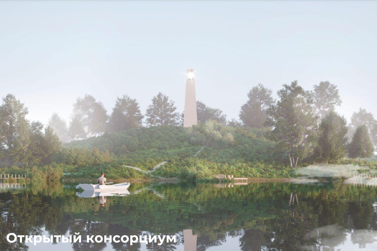 Команда Открытого консорциума предлагает проект с фруктовыми садами, регулярными скверами и благоустроенной трибуной для мастер-классов. Одной из особенностей этого проекта может стать большой маяк на Зеленом острове.
