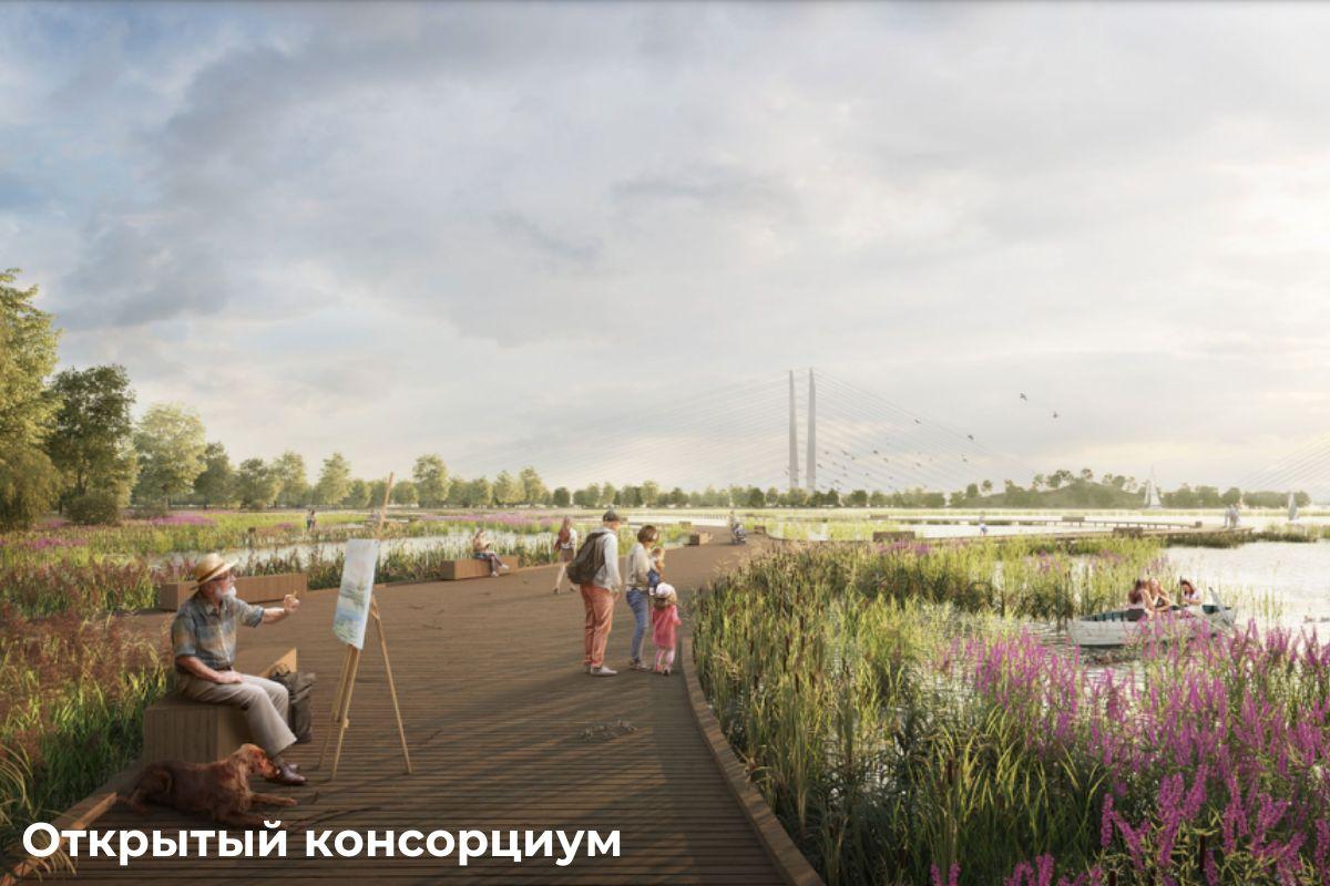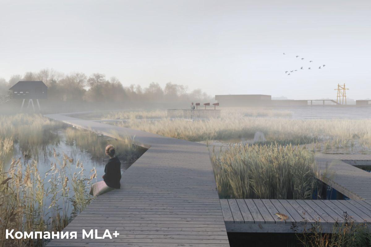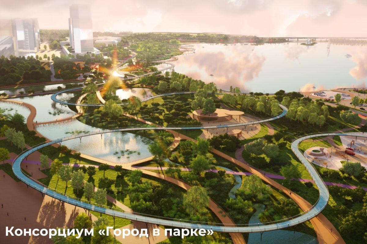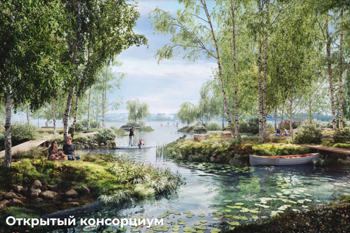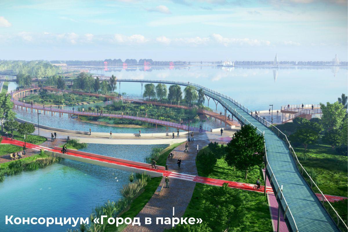 Проектировщики консорциума «Город в парке» предлагают построить настилы вдоль пруда и тем самым увеличить площадь соприкосновения города и природы. Также в проекте предусматривается строительство озер в парке и водных каналов вблизи жилой застройки.