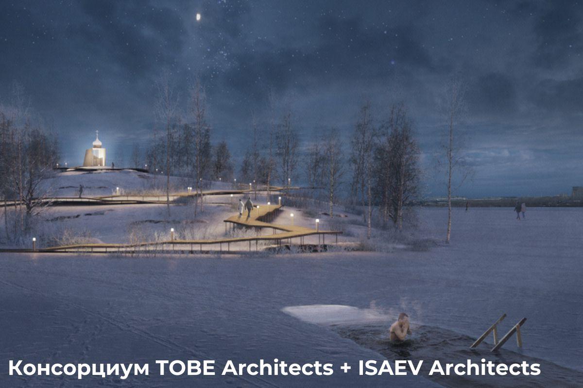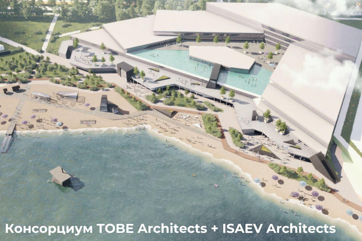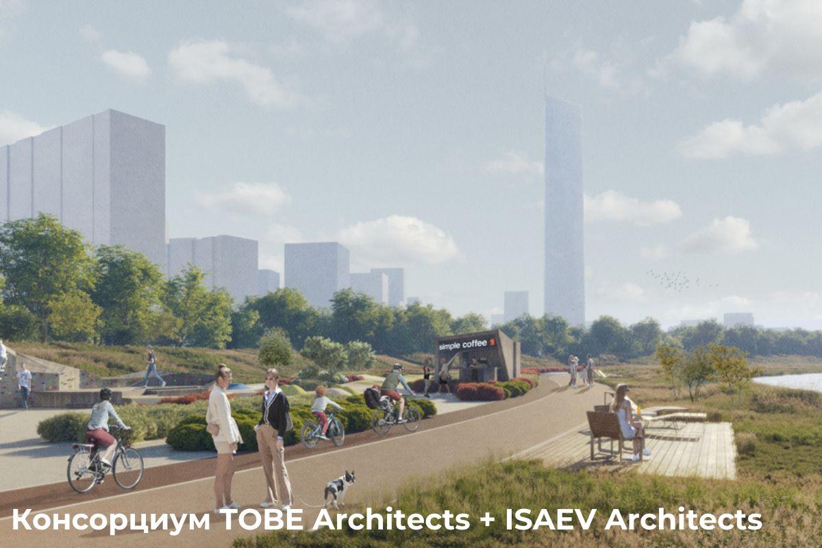 Команда TOBE Architects + ISAEV Architects видит набережную как место для встреч, городских событий и активного отдыха. Их проект включает зоны для общения, спортивных мероприятий и событий.