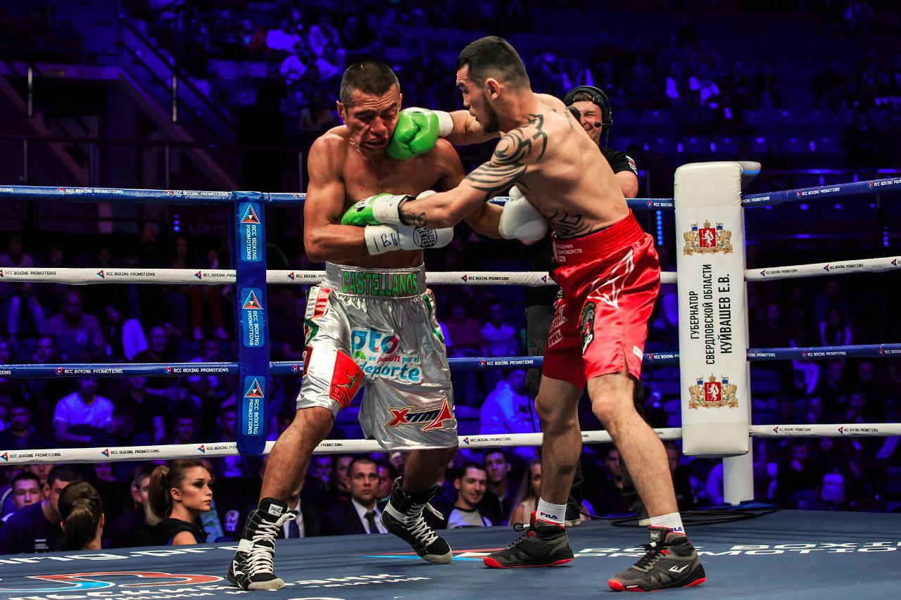 В главном бою вечера еще один представитель Академии единоборств РМК Шавкат Рахимов (12-0) провел вторую защиту титула чемпиона мира IBO. Его соперником стал Робинсон Кастельянос (24-13). Участники главного боя начали показывать хороший бокс с первых секунд. За 50 секунд до конца первого раунда Рахимов хорошо попадает слева и отправляет мексиканца в нокдаун, но Кастельянос быстро встает и активно атакует до конца раунда. Второй раунд начинается в очень высоком темпе, но Рахимов вновь плотно попадает и Кастельянос вновь в нокдауне. Рахимов не дает сопернику отдыха и атакует хорошими сериями ударов - третий нокдаун. Россиянин продолжает в том же темпе, видно, что итог боя уже определен - мексиканец не успевает восстановиться - четвертый нокдаун и рефери останавливает бой. Шавкат Рахимов побеждает техническим нокаутом и проводит удачную защиту титула чемпиона мира IBO.