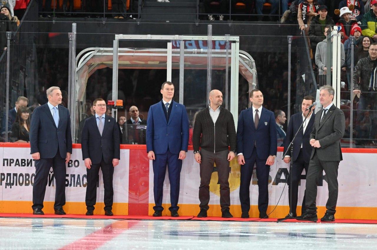 Собрания РФ Владимир Якушев, Министр спорта Российской Федерации, президент Олимпийского комитета РФ Михаил Дегтярёв, полномочный представитель президента России в УрФУ Артём Жога, губернатор Свердловской области Евгений Куйвашев, президент Федерации хоккея России, многократный чемпион Европы и Мира, трехкратный Олимпийский чемпион, легенда хоккея Владислав Третьяк, президент Континентальной хоккейной лиги Алексей Морозов.