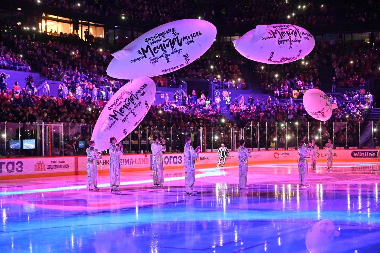 В шоу-открытии были использованы современные сценические решения и спецэффекты, демонстрирующие технологические возможности площадки. 3D-мэппинг и проекции рассказали историю строительства арены: от первых чертежей до грандиозного завершения. Над трибунами парили дирижабли с символами мечты, а объемные инсталляции подчеркнули двойное предназначение арены – для спорта и для творчества. Музыкальное сердце события – группа на эффектных платформах, которые парили над ареной. Финал шоу украсила динамичная 3D-модель логотипа ХК «Автомобилист», символизируя поддержку болельщиков родного клуба.