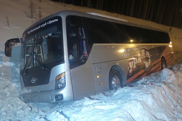 На ЕКАДе автобус футбольного клуба «Урал» съехал в кювет