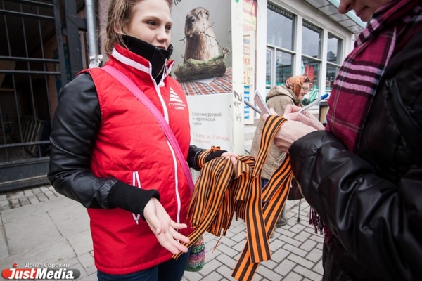 Почему нельзя носить Георгиевские ленты на ботинках? В центре Екатеринбурга волонтеры будут выдавать символы победы и объяснять их ценность