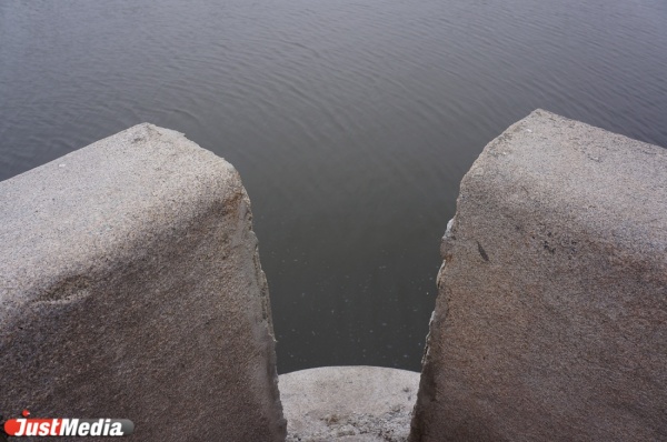 Вандалы выбили еще один гранитный «зуб» парапета на набережной городского пруда в Екатеринбурге