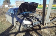 На Уралмаше водитель иномарки влетел в столб освещения