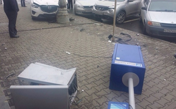 У Мытного двора «Мазда» выкорчевала из земли паркомат и протаранила «Шкоду»