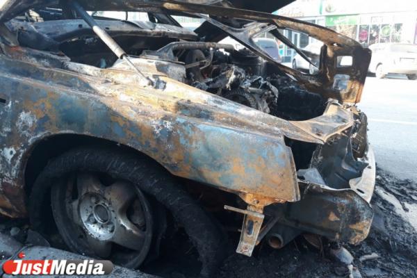 Иномарка полностью сгорела на парковке на ВИЗе. ВИДЕО