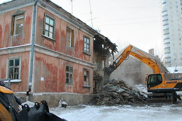 В Екатеринбурге рабочие начали сносить аварийные бараки на улице Энергостроителей