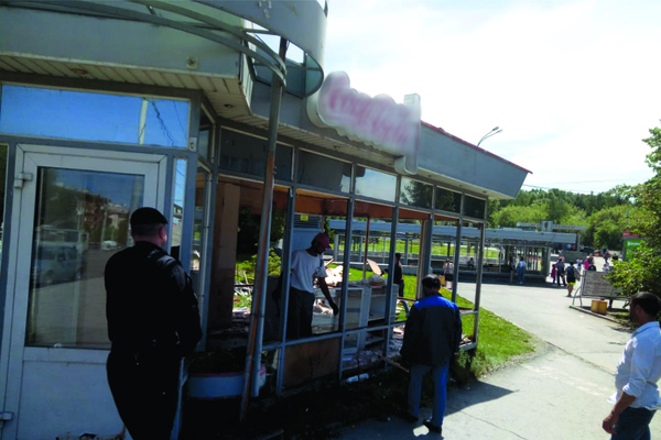 В Екатеринбурге у медгородка приставы убрали незаконный киоск «Цветы»