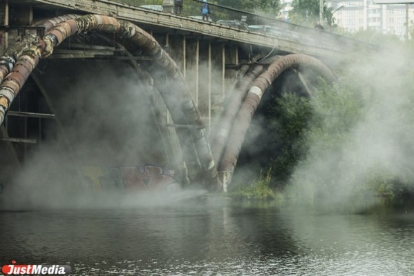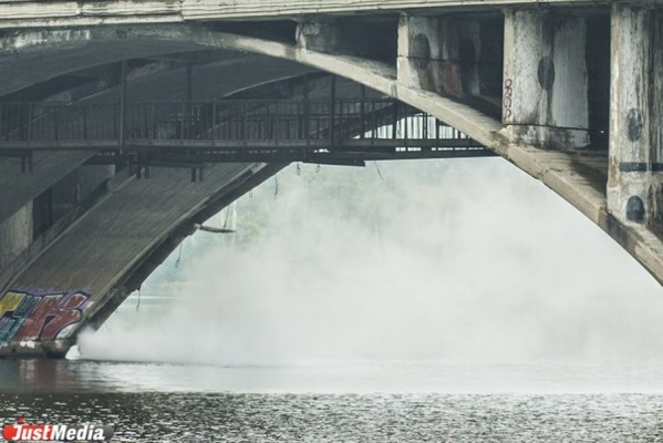 Кипяток лился в реку на протяжении трех часов, создавая сильный пар, мешающий движению на мосту.