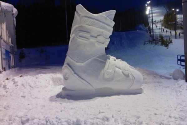 На Волчихе появился огромный горнолыжный ботинок из снега
