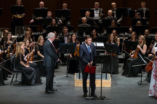 Перед зрителями театра Елиссейских полей выступили Денис Мацев и Уральский молодежный симфонический оркестр.