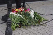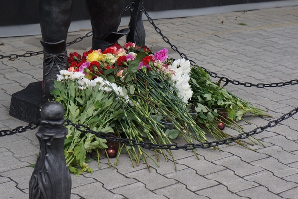 Весь день к памятнику хоккеистам горожане несут цветы.