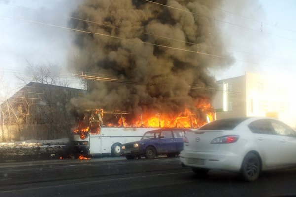 На улице Фронтовых Бригад горит рейсовый автобус