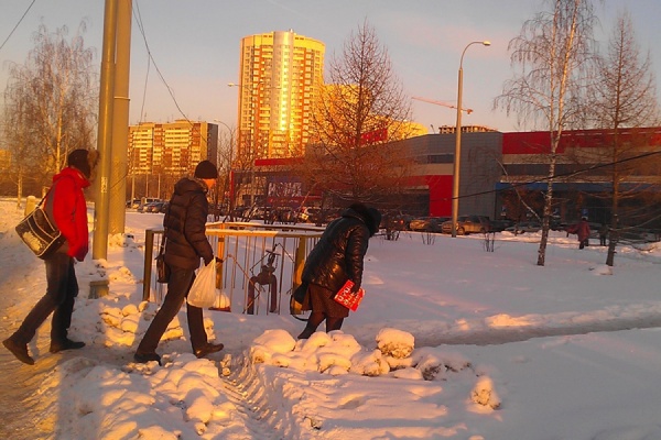 В Екатеринбурге на Ботанике провисший провод мешает пешеходам переходить дорогу