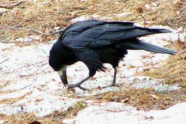 Пока поля покрыты снегом, грачи кормятся на обочинах дорог и на городских помойках.