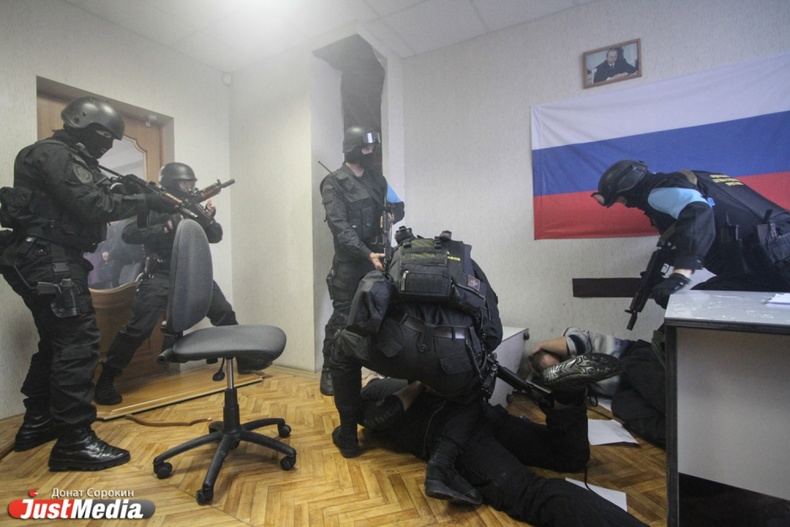 В здании арбитражного суда Уральского округа сегодня развернулись настоящие боевые действия с захватом людей, бросанием гранат и пожаром. С утра там проходили учения судебных приставов и МЧС.