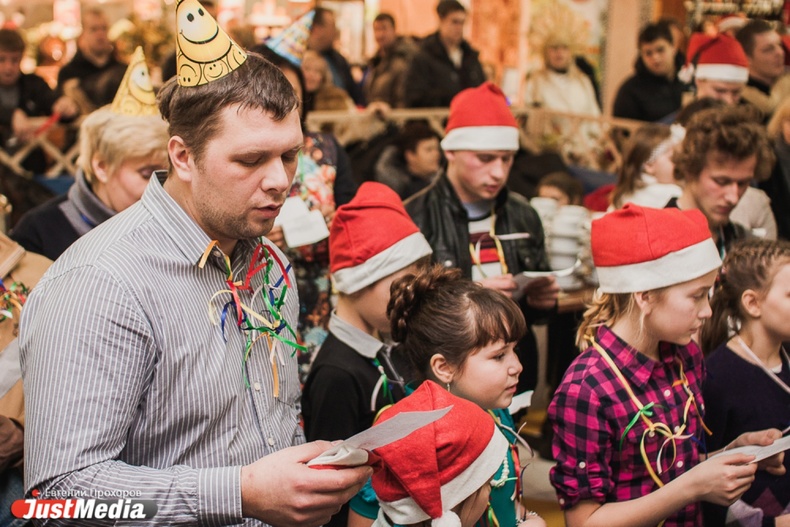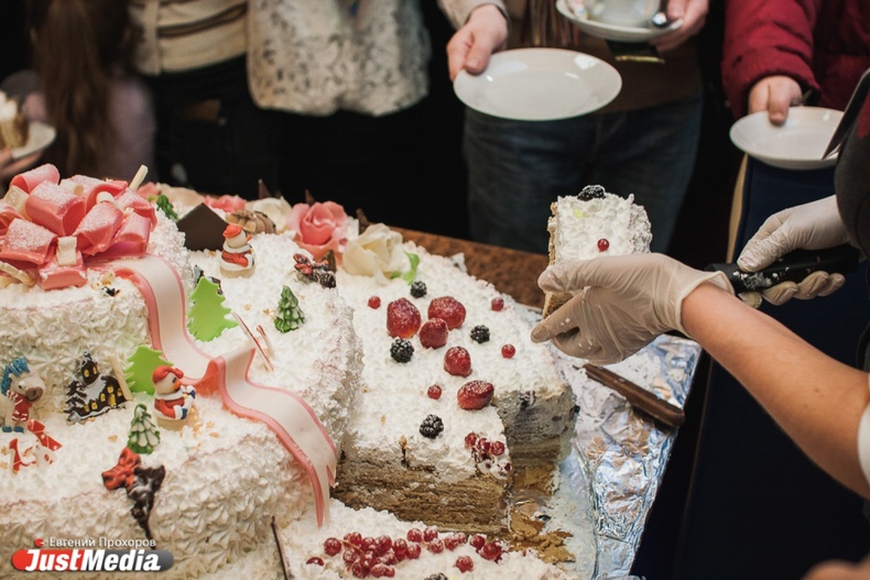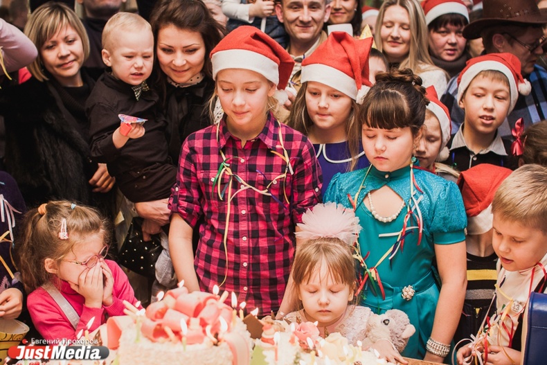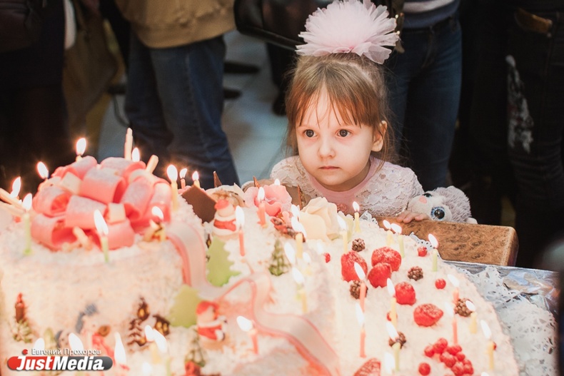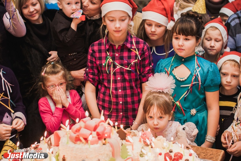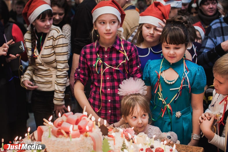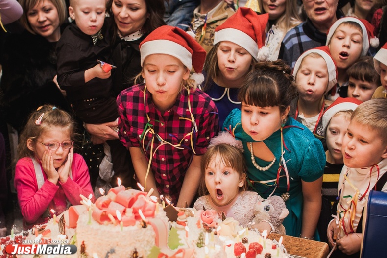 Новогодние именинники спели хором поздравительную песню и задули свечи на огромном торте