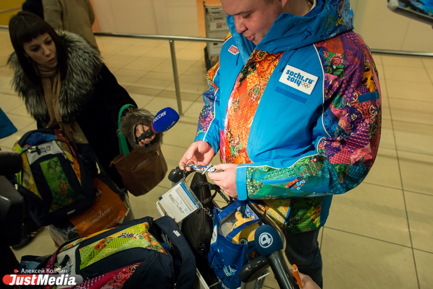 «Золотого» биатлониста и «бронзовую» конькобежку встречали родные, поклонники, чиновники и фото и видеокамеры.